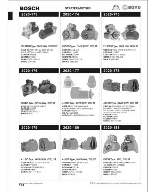 359 DD Type , 12V/4.4KW, CW, 9T 410 DD Type , 24V/5.5KW, CW, 9T 410 DD Type , 24V /6.6KW, CW, 11 T PLGRType , 12V/, CW, 8T PLGR Type , 12V/1.9KW, CW, 9T PLGR Type , 12V/1.6KW, CW, 9T